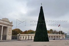 Дерево появилось у главного входа в парк Горького в центре столицы. Судя по видео, которое опубликовало агентство, елку полностью собрали, но не успели украсить, за исключением серебристой звезды на верхушке.
