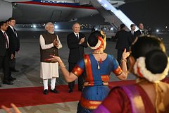 Глава РФ прилетел в Нью-Дели с официальным визитом, который продлится два дня. Индийский премьер Нарендра Моди лично встретил Путина, что, по словам высокопоставленного индийского источника, является «редким дипломатическим жестом».