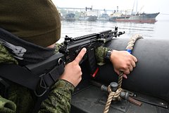 По его словам, люди в камуфляжной форме могут быть сотрудниками каких-либо частных охранных компаний. Также он рассказал, что Россия в последнее время усилила военное наблюдение за Балтийским морем и Финским заливом, на пути следования танкеров практически постоянно присутствуют боевые корабли РФ.
