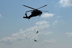 Спецназ Главного управления разведки (ГУР) Украины высадился с вертолета UH-60 Black Hawk в одном километре к северо-западу от окраины Красноармейска (украинское название — Покровск) в Донецкой народной республике (ДНР).