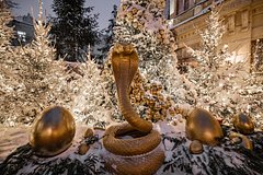 Генеральный директор ресторана Butler Анастасия Данилова отметила, что символ года был выбран намеренно. «Мы поставили золотую фигуру змеи рядом с большой елью, украшенной шарами такого же благородного цвета. Это был яркий акцент на территории, прилегающей к ресторану, где гости все время фотографировались», — сказала она. По словам Даниловой, композиция дополнялась натуральными заснеженными елями, что создавало новогоднюю атмосферу и усиливало праздничный эффект.