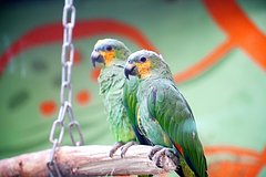 Среди пернатых обитателей зоопарка первыми в теплые помещения переехали попугаи: александрийский, жако, орлиный, сливоголовый, зелено-красный и малый кольчатый. Увидеть этих животных можно в правом крыле павильона «Дом птиц». Кроме того, туда переместились шлемоносные казуары — экзотические пернатые родом из Новой Гвинеи, а также одни из самых интеллектуальных и сильных птиц — кафрские рогатые вороны.